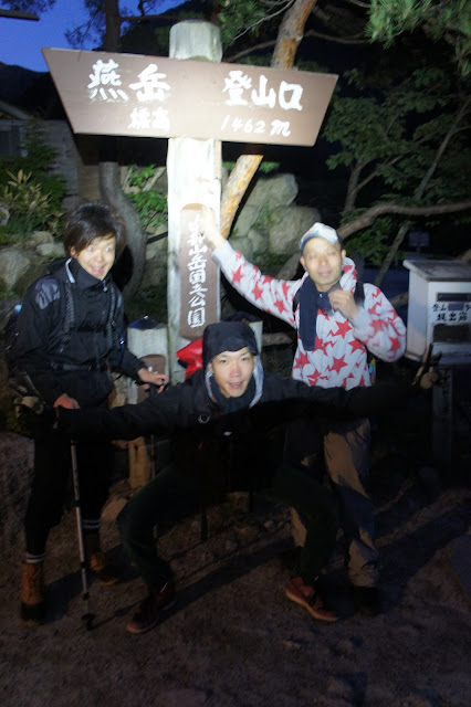 まずは登山口で記念写真。